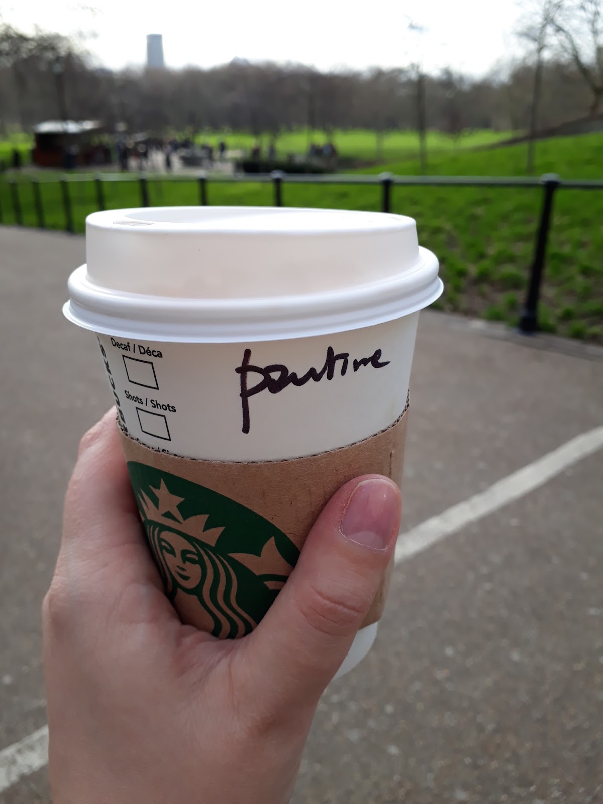 Tätä matkaa edeltävä reissu Lontooseen tehtiin kuopuksen ollessa vasta kolme, joten lapsi ei siitä paljon muista, tuskin mitään. Niinpä päätimme tavoistamme poiketen ottaa kaupunkia haltuun pyörien päältä katsoen ja hyppäsimme turistibussiin. Tällaisia "hop on - hop off" -busseja kulkee pitkin ja poikin kaupunkia useiden eri yhtiöiden toteuttamana ja näin myös reittejä on paljon. Me menimme helpoimman kautta, eli valitsimme läheisen metroaseman kupeesta lähtevän linjan, joka kierteli tarpeeksi kattavasti kaikkialla. Sitten ei muuta kuin caramel latte mukaan Starbucksista ja matkaan.